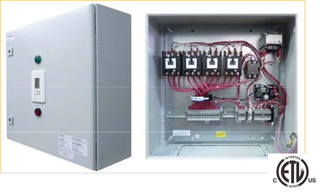 - When receiving a signal from the snow sensor/s, it activates the contactors energizing the heating elements.